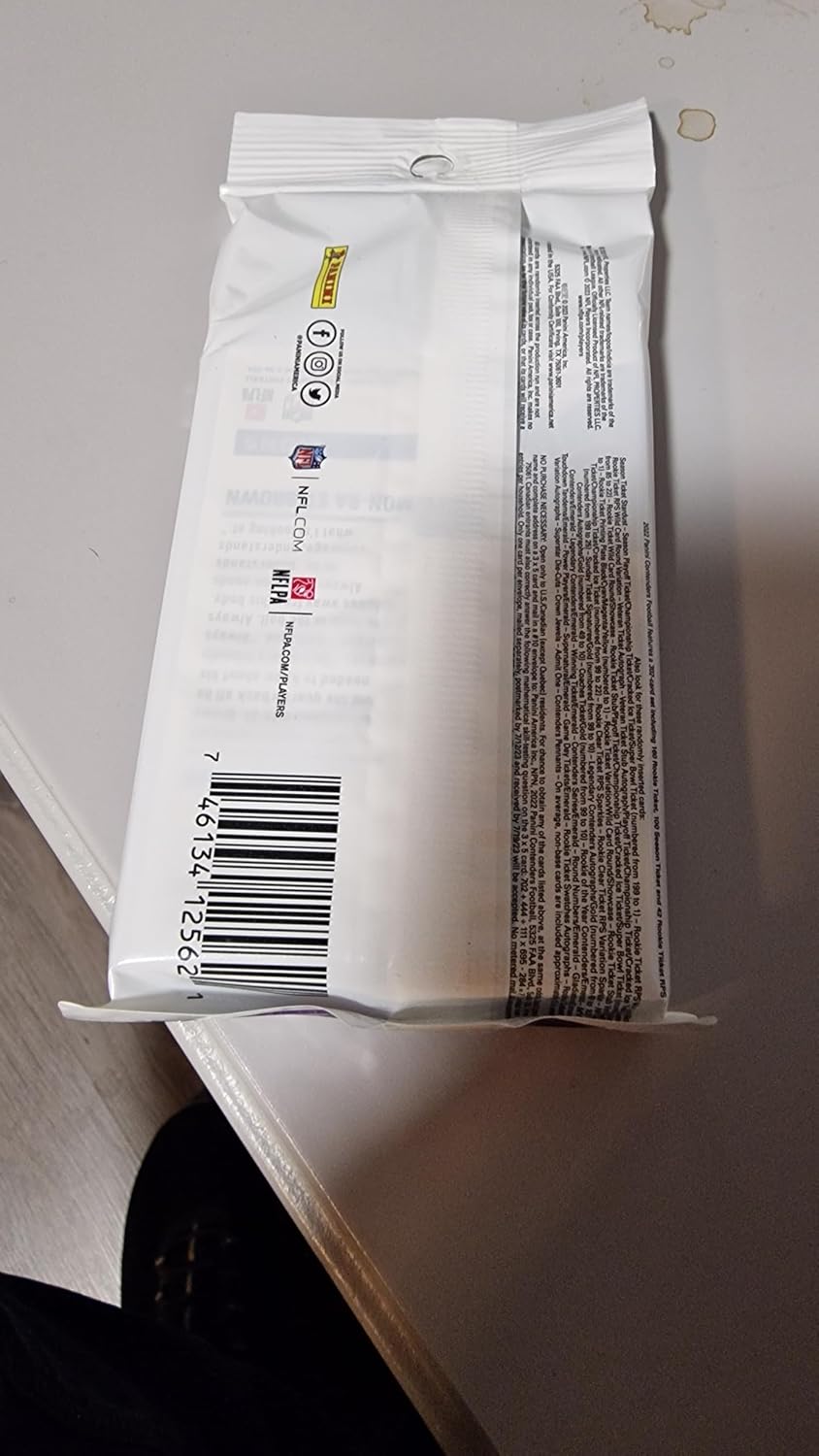 Across all retail look for the Rookie Ticket Wild Card Round Autographs parallel! Chase this twist to the iconic Rookie Tickets, which feature autographs from all the best and brightest young talent the NFL has to offer which includes Kenny Pickett, Aidan Hutchinson, Drake London and many more!**Box is not shrink-wrapped**Hunt for the classic retail-exclusive and short-printed Stardust parallel of the Season Ticket!Look for the short-printed exclusive Rookie Ticket Swatches Autographs para