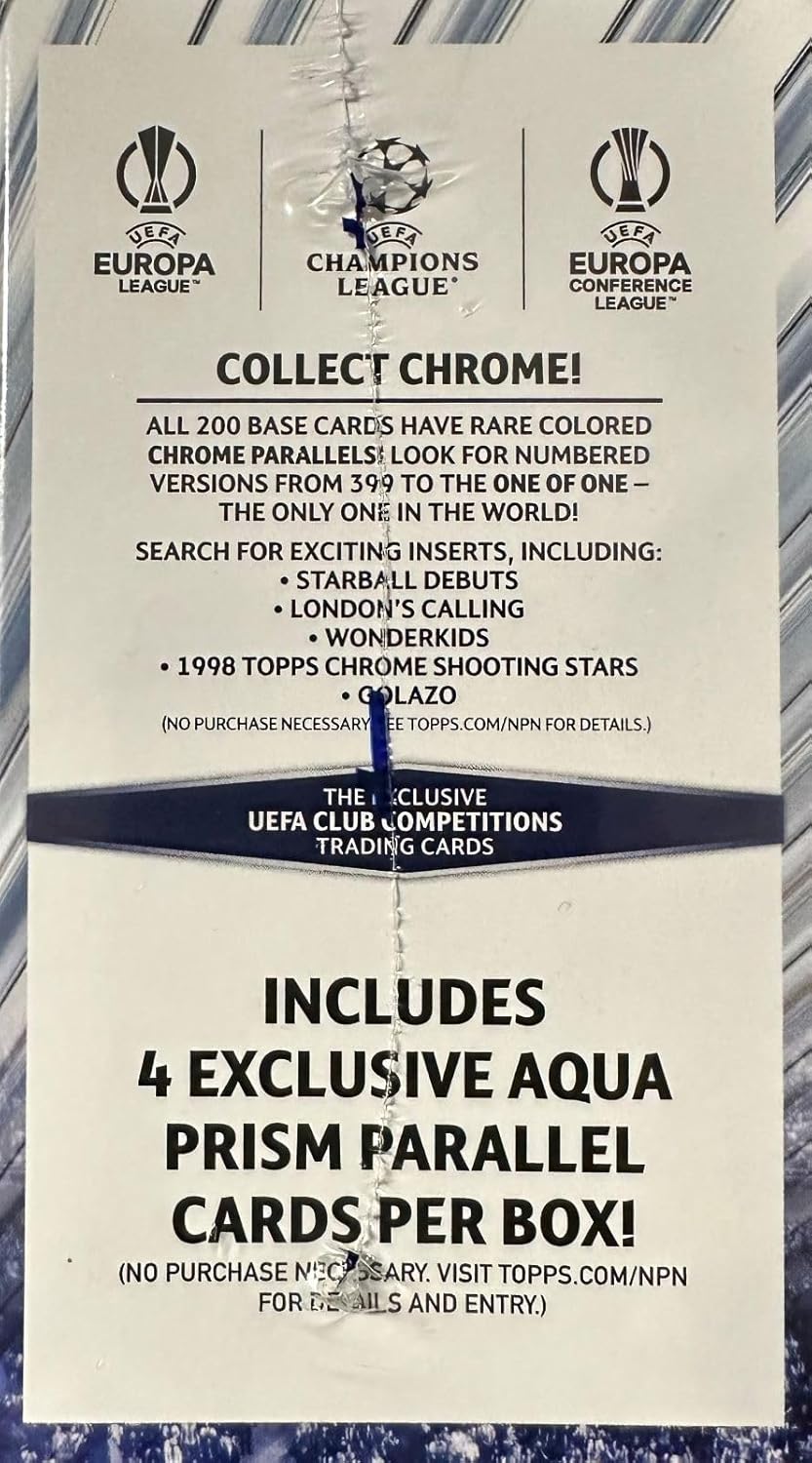 - This is a Topps Chrome Series 2023 2024 UEFA Champions League Soccer Collection Factory Sealed Blaster Box.