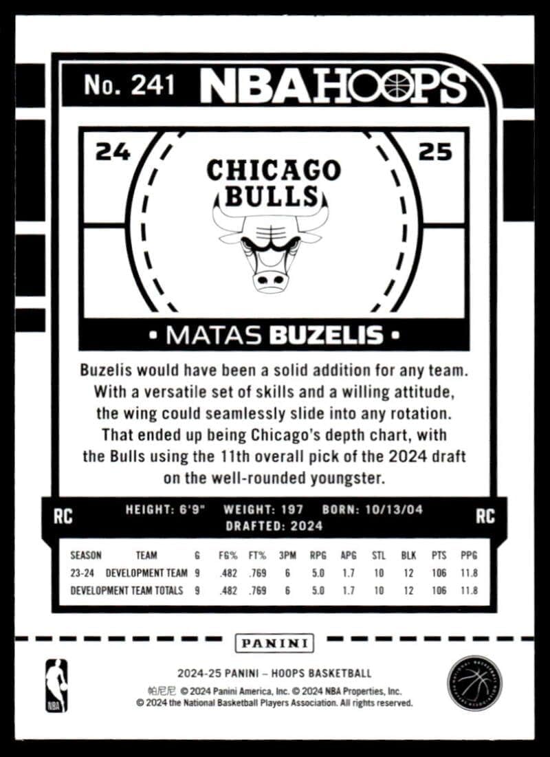 2024-25 Hoops #241 Matas Buzelis RC Rookie Chicago Bulls NBA Basketball Base Trading Card