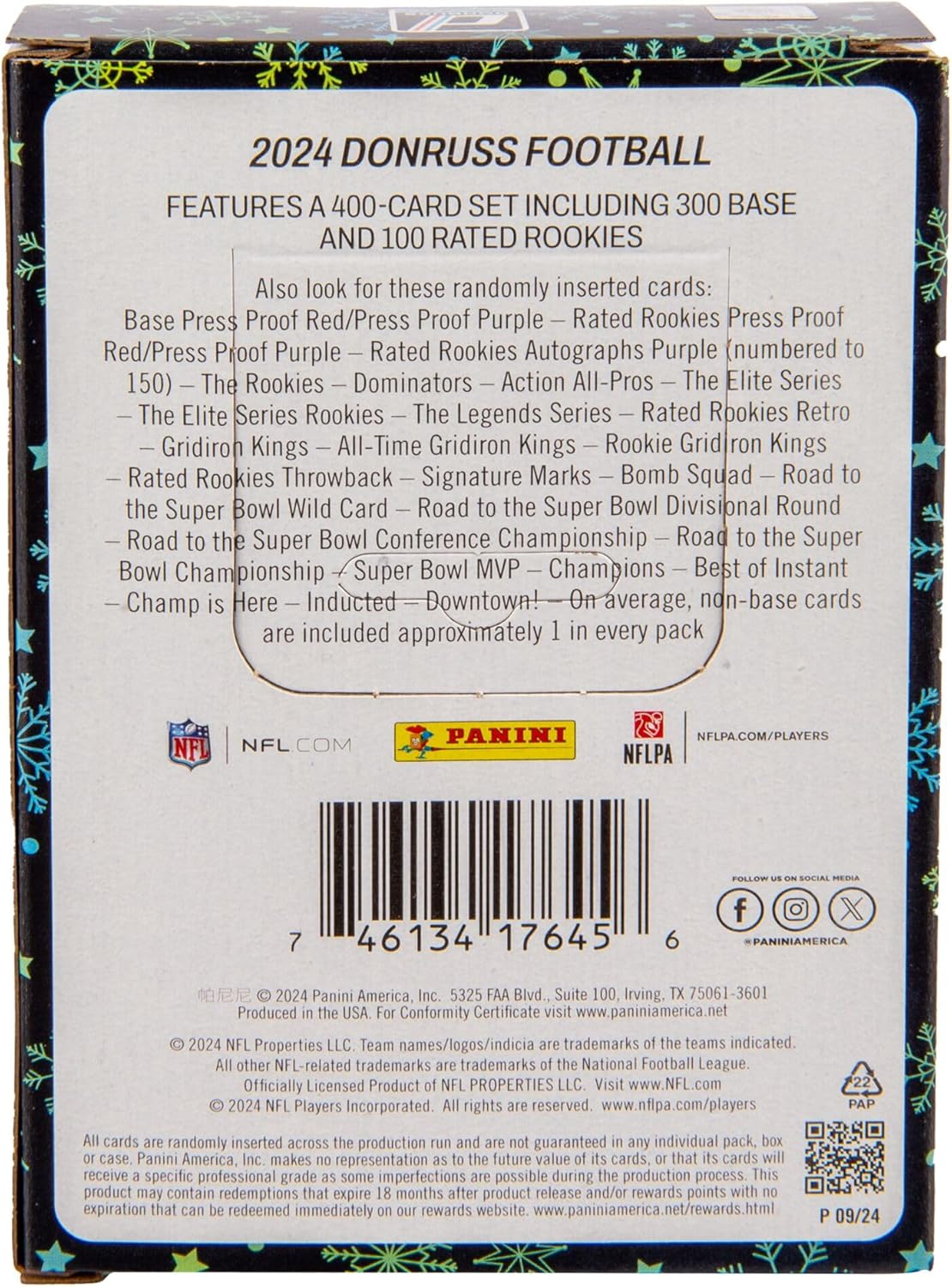 Featuring the iconic Donruss Football franchise and outstanding 2024 Rookie Draft Class! Chase a robust array of inserts! Chase the 2024 Rookie Draft Class! Featuring unique insert sets that are exclusive to this product!