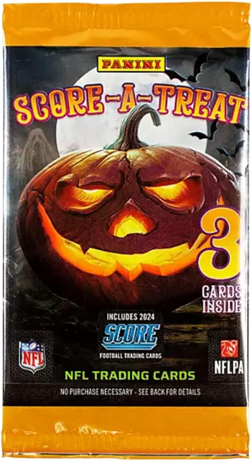 nearth the Frightfully Fun Collection Introducing the all-new 2024 Score-A-Treat series from the revered Score Football brand. This exclusive collection is a perfect sweet treat for trick-or-treaters or a delightful addition to your own collection. 40-pack collection features a thrilling repertoire of NFL stars and rising rookies. Each three-card pack is filled with tales of gridiron greatness and chilling artwork that sends delightful shivers down the spine. This bewitching bundle is sure to captivate fans of all ages, but it's not for the faint of heart. Perfect for Veteran Hobbyists and Newcomers Whether you're a daring, veteran hobbyist or a wide-eyed newcomer, only the bravest souls have what it takes to dig up each creepy collector's card. The 2024 Score-A-Treat Football is a treasure trove of riches ripe for reaping. It features a 349-card set that includes 300 Base cards and 49 Rising Stars cards. Each card is adorned in a vibrant Pumpkin, Bats or Trick or Treat parallel, just waiting to be unwrapped. Spooky Surprises and Enchanting Magic But beware! When the allure of spooky surprises intertwines with the enchanting magic of sports and Panini’s legendary brands, the fun may never end. The 2024 Score-A-Treat series is more than just a collection of trading cards. It's a thrilling journey into the world of NFL stars and rookies, wrapped in the enchanting magic of Halloween. Get ready to unearth the frightfully fun collection!