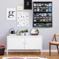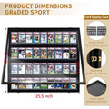【LARGE CAPACITY】The trading card display case can be used to display a variety of 36 graded sports cards.Baffles layers of shelves increase the safety. The card display frame is 25.5IN W x 31IN H x 2IN D, the height of each row is 5.3 IN.