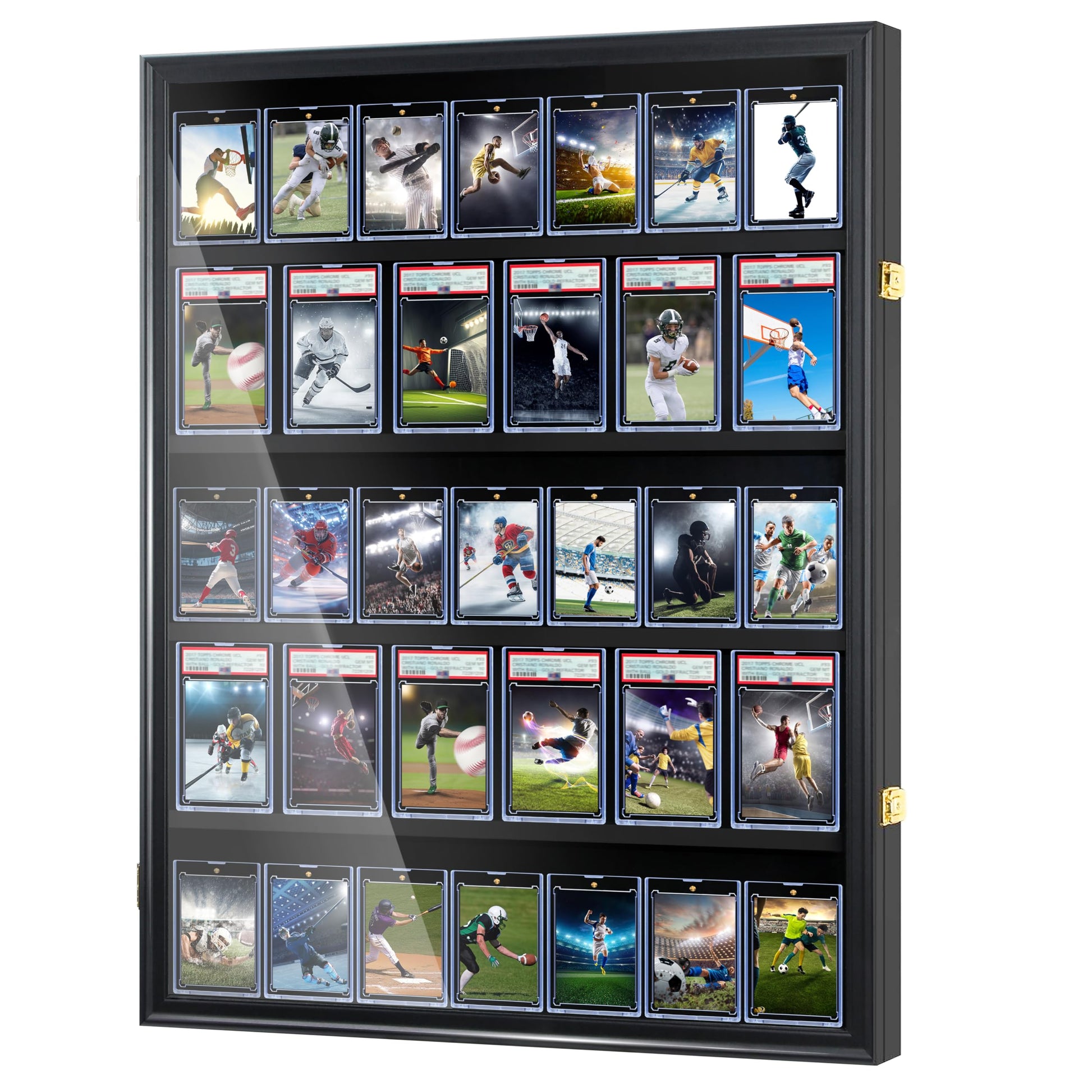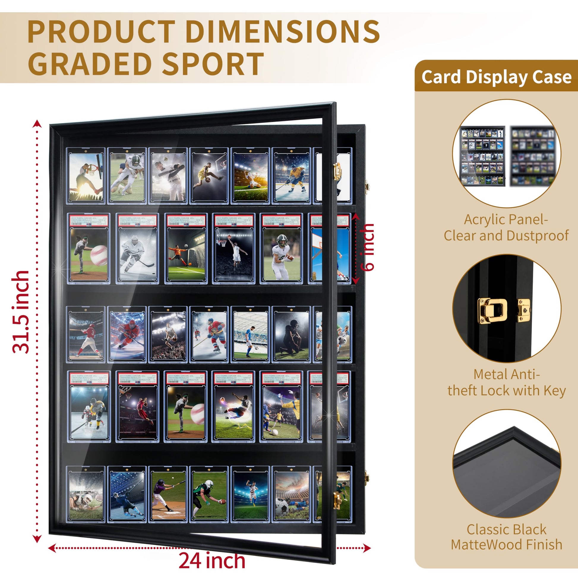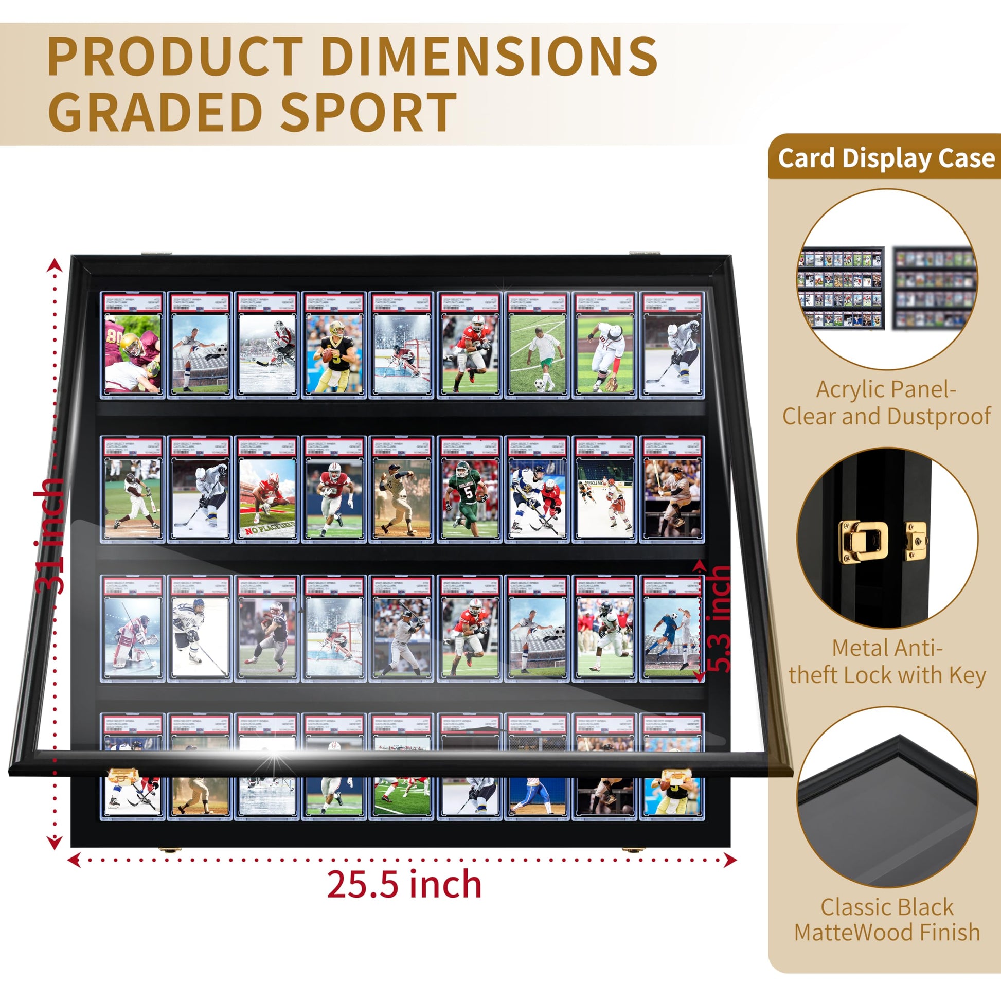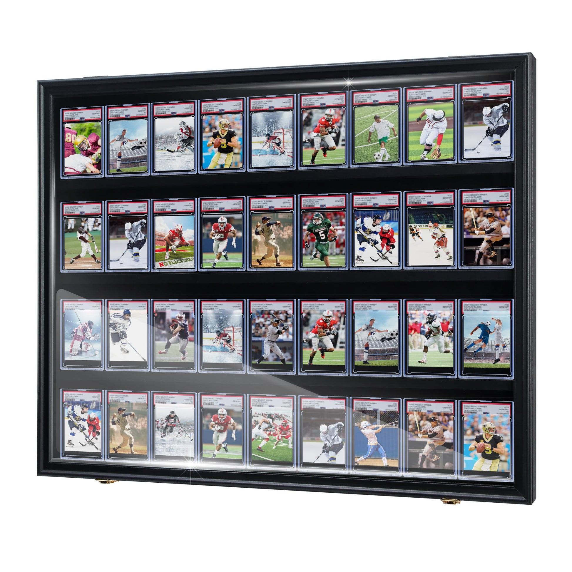 Baseball Card Display Case-36 Graded Sports Card Display Frame,UV-Protected Transparent Visual Lockable Wall Cabinet for Football Baseball Basketball Hockey Trading Cards,Large Horizontal Black