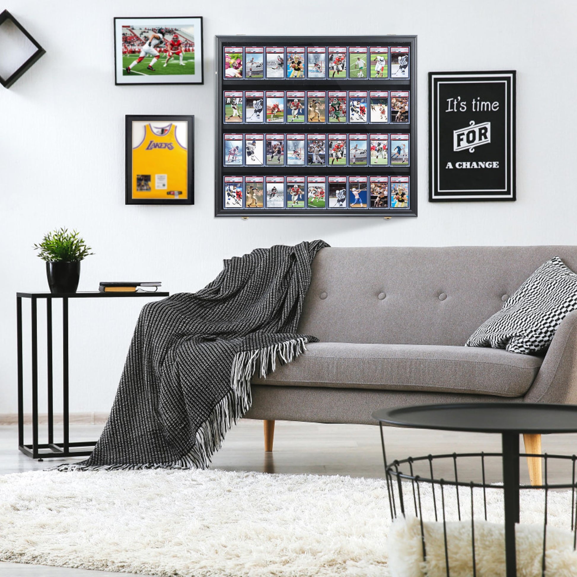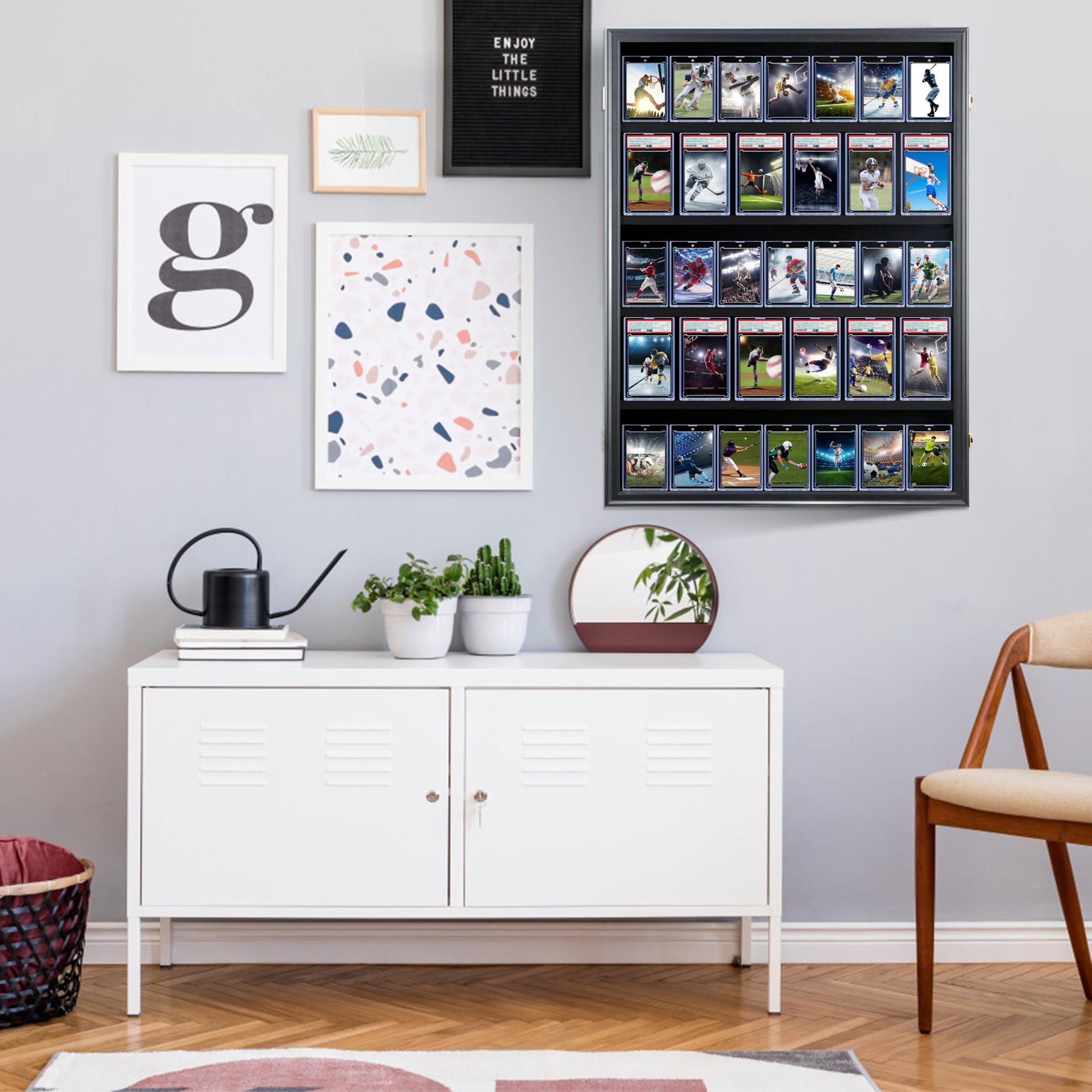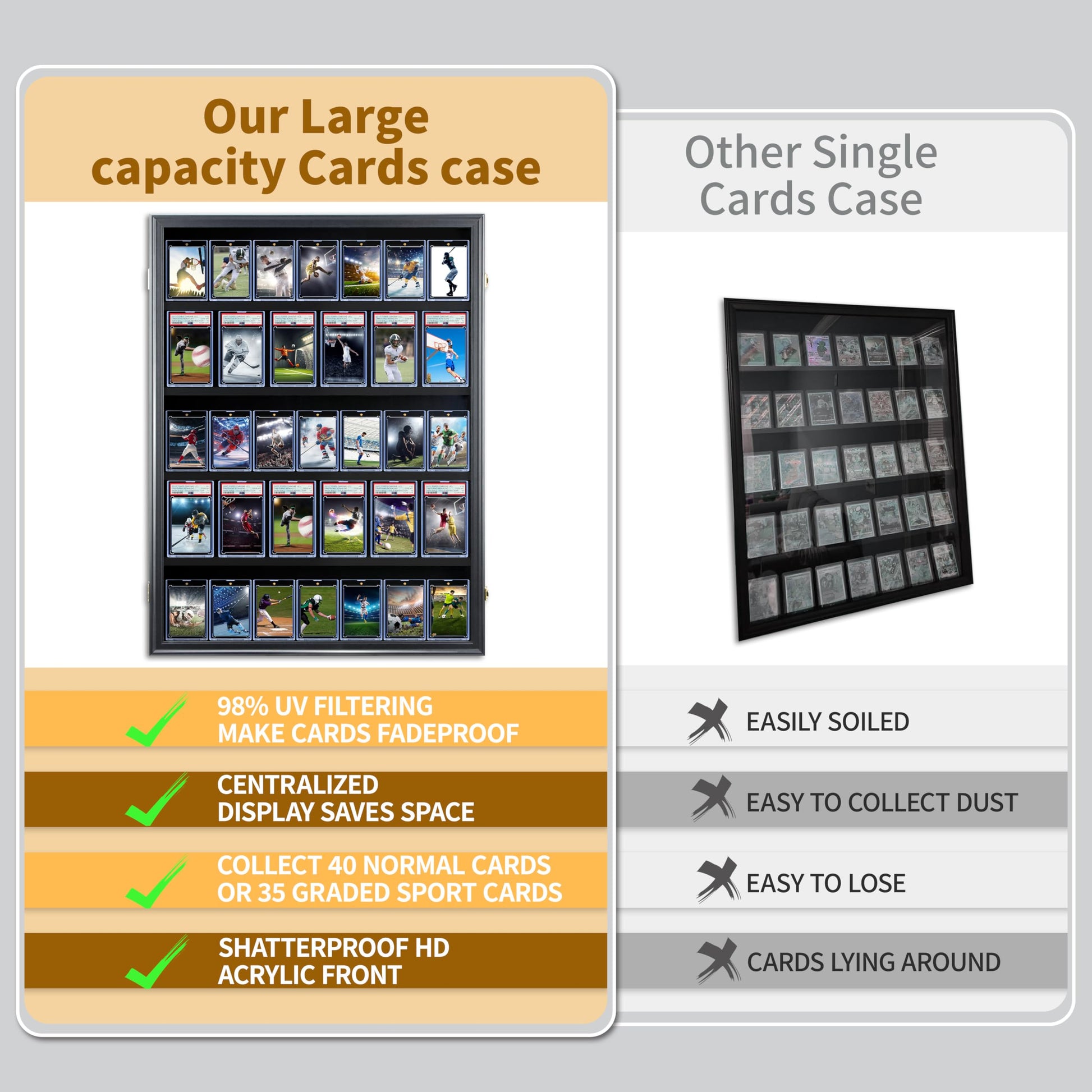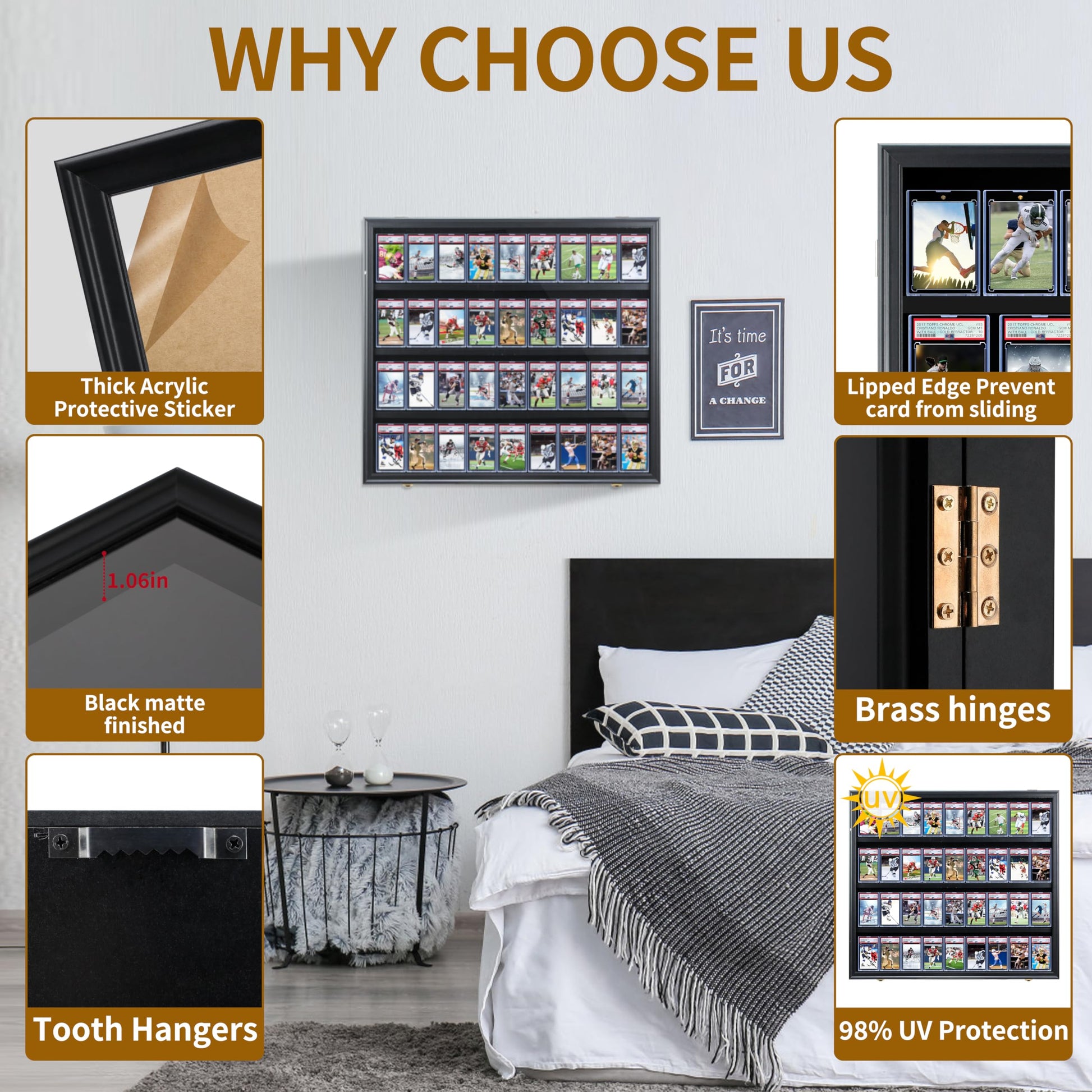 Baseball Card Display Case-36 Graded Sports Card Display Frame,UV-Protected Transparent Visual Lockable Wall Cabinet for Football Baseball Basketball Hockey Trading Cards,Large Horizontal Black