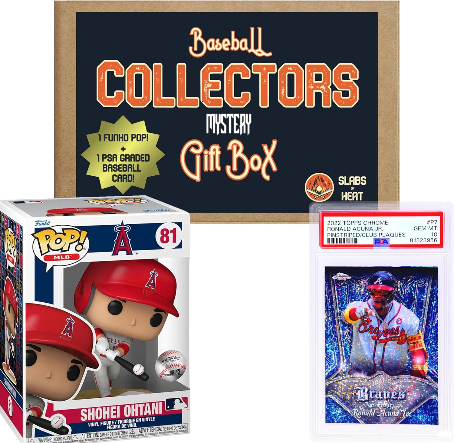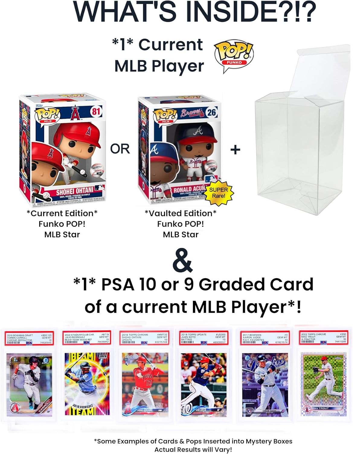 - Deluxe Baseball Collectors Gift Box featuring an MLB MINT Funko Pop with Pop Protector & PSA Graded 10 or 9 Officially Licensed Topps Branded Baseball Card with potential of pulling PSA 10 Rookie Cards & Vaulted/Discontinued Funko Pops!
