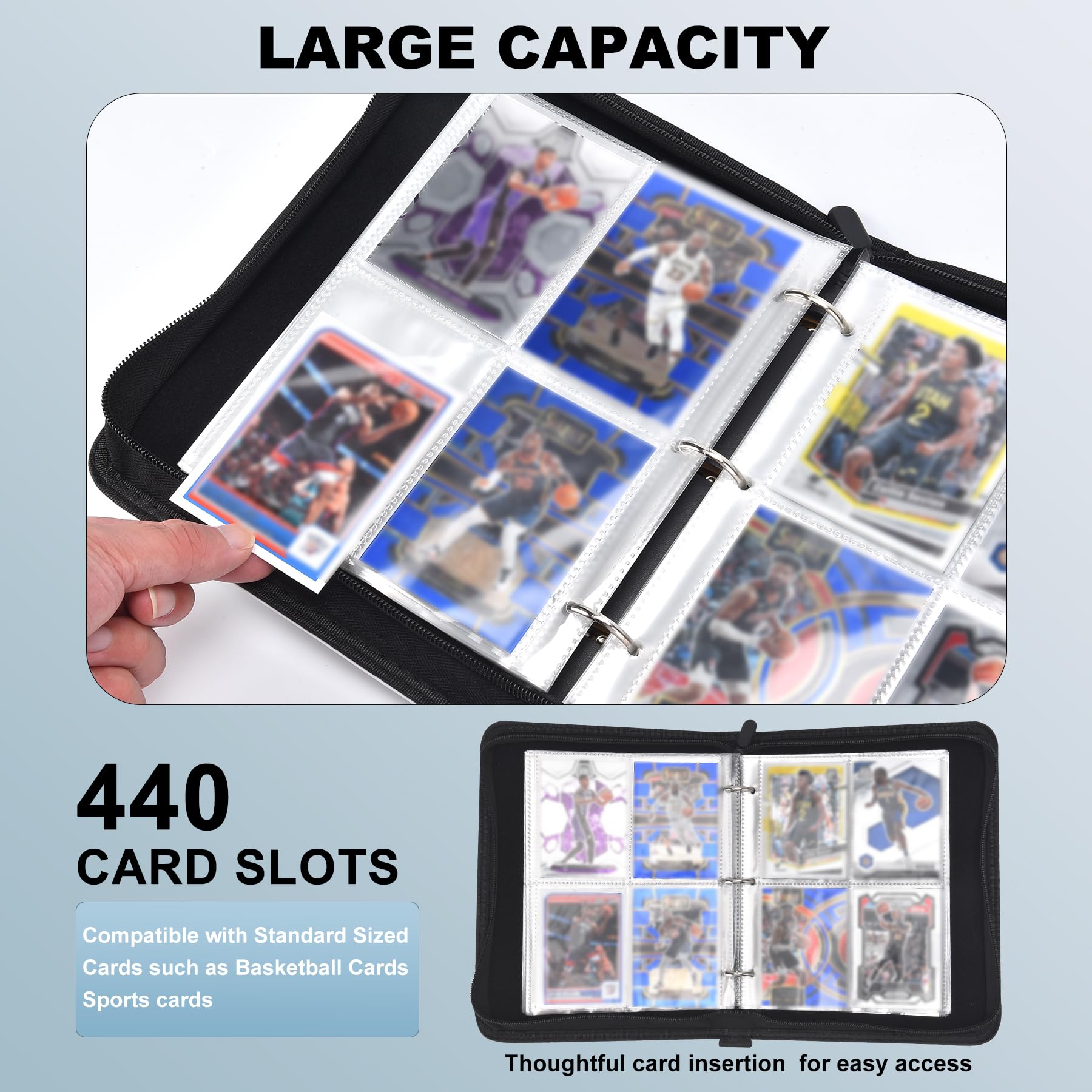 Basketball Card Binder for Basketball Cards 440 Pockets,Waterproof Trading Card Binder 4-Pocket with 55 Removable Sleeves Card Holder Album Compatible with Basketball Trading Cards 2024-2025