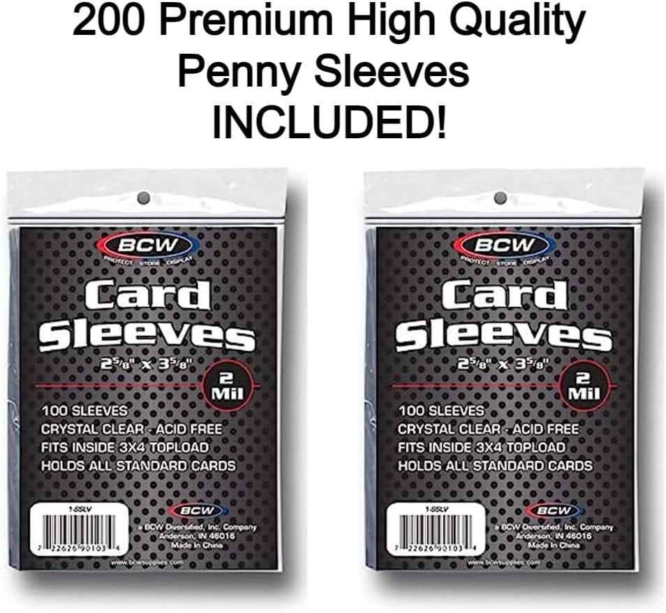 - PROTECTIVE CARD SLEEVES INCLUDED: Comes with 200 penny sleeves, keeping your collection safe and in mint condition.