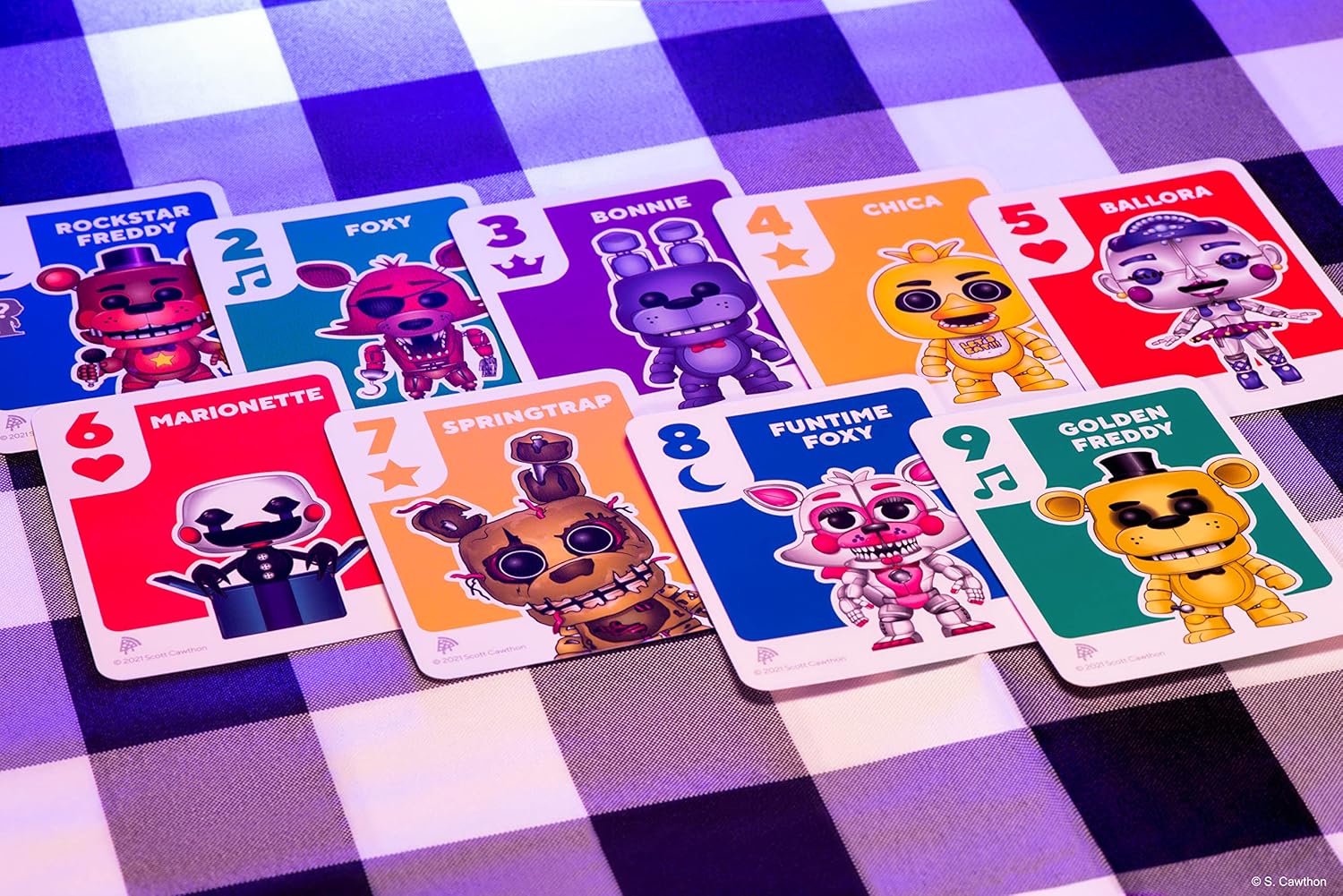 - Nine exciting Five Nights At Freddy’s characters in full color card art