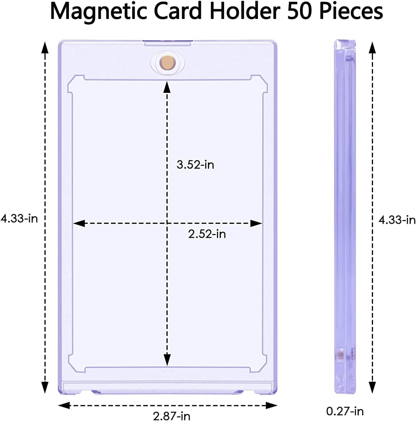 - 【what’s inside】 50 Pack of 35pt magnetic card holders, interior dimensions:2.52 x 3.52 x 0.039, exterior dimension:2.87 x 4.33 x 0.27, sized to fit standard size (2.5" x 3.5") sports trading cards or gaming cards