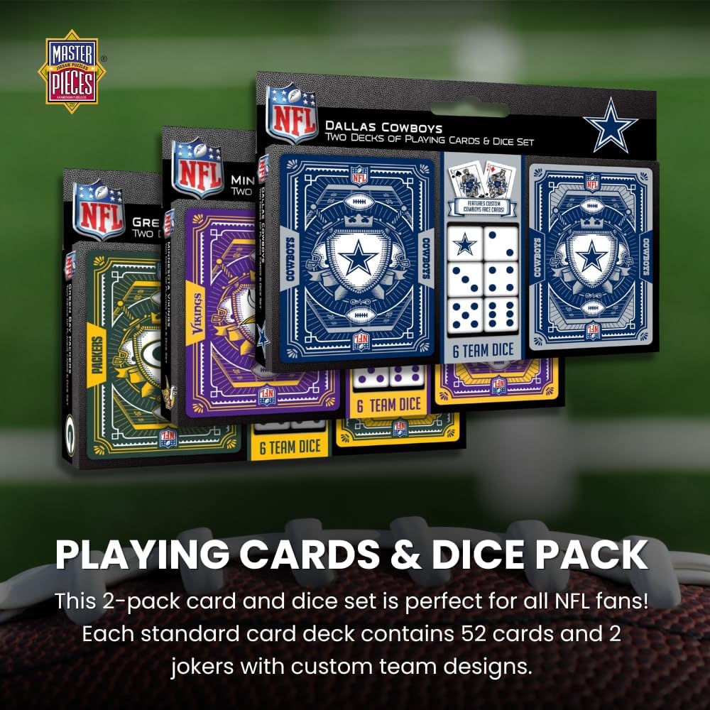 MasterPieces Game Day - NFL Minnesota Vikings 2-Pack Playing Cards & Dice Pack - Officially Licensed Set for Adults and Family