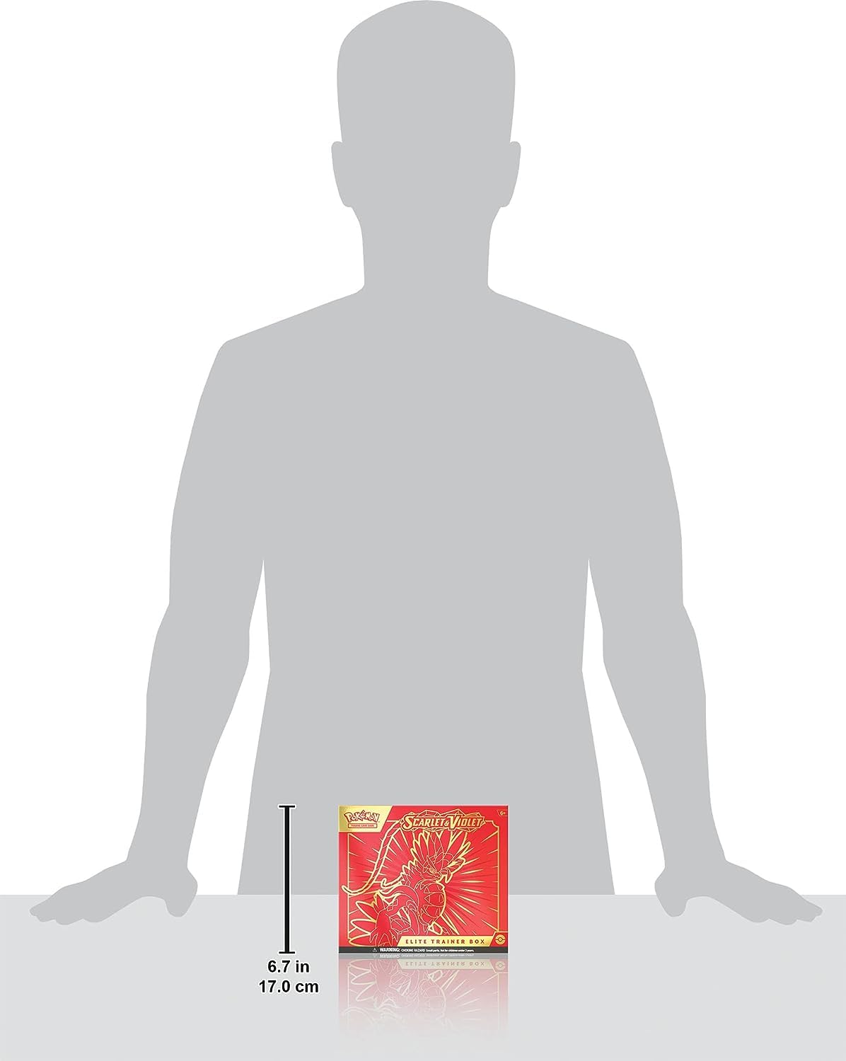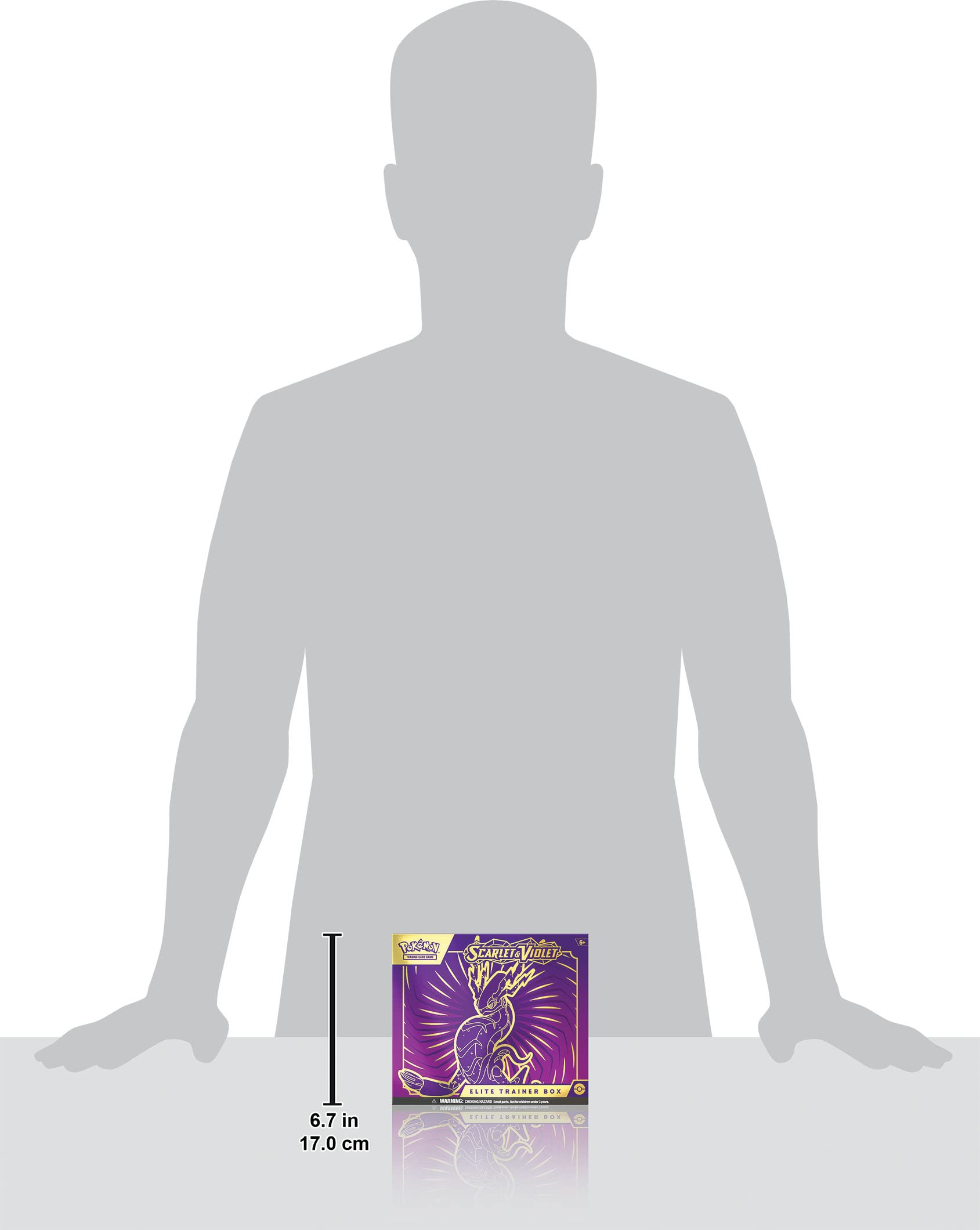 Begin a New Adventure with Pokémon ex and set out for a journey in the Paldea region! Meet first partners Sprigatito, Fuecoco, and Quaxly, and explore the power of the Legendary Pokémon Koraidon and Miraidon as Pokémon ex. The Pokémon TCG: Scarlet & Violet expansion features new Pokémon from the Paldea region and the introduction of Tera Pokémon ex. Includes 1 full-art foil promo card featuring Miraidon, 65 card sleeves featuring Miraidon, 45 Pokémon TCG Energy cards, a player’s guide to the Scarlet & Violet expansion, and 9 Pokémon TCG: Scarlet & Violet booster packs (each Pokémon TCG: Scarlet & Violet booster pack contains 10 cards and 1 Basic Energy, with 3 guaranteed foil cards per booster.) You also get 6 damage-counter dice, 1 competition-legal coin-flip die, 2 plastic condition markers, a collector’s box to hold everything, with 4 dividers to keep it organized, and a code card for Pokémon TCG Live. The Elite Trainer Box has everything you need to launch your Pokémon TCG gameplay to new heights!