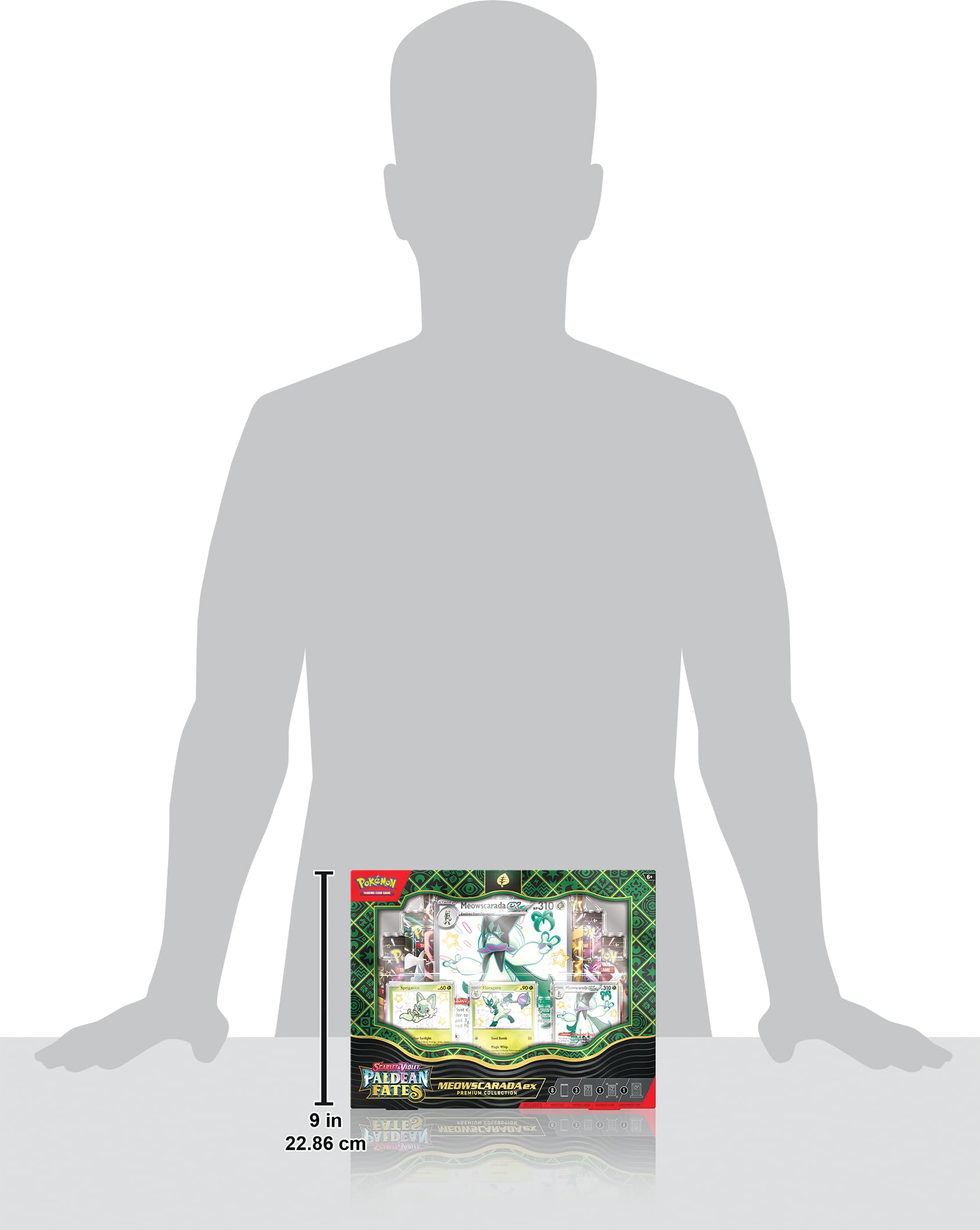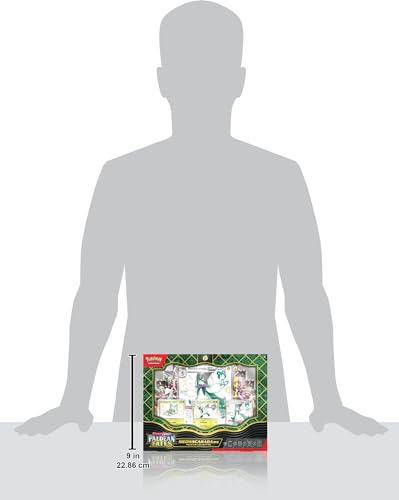 Light Up Battles with a Shiny Pokémon ex! Capturing a Shiny Pokémon has always been a rare feat, but you can add three of these Pokémon with special coloring to your arsenal in each of these collections! The final Evolution appears as a Shiny Pokémon ex, while the Basic and Stage 1 Pokémon join in as playable promo cards, and you can show off the full Evolution chain in a magnetic 3-card protector. You'll also find an oversize card featuring the star Pokémon ex, plus a stack of booster packs from the Scarlet & Violet—Paldean Fates expansion to further grow your collection!