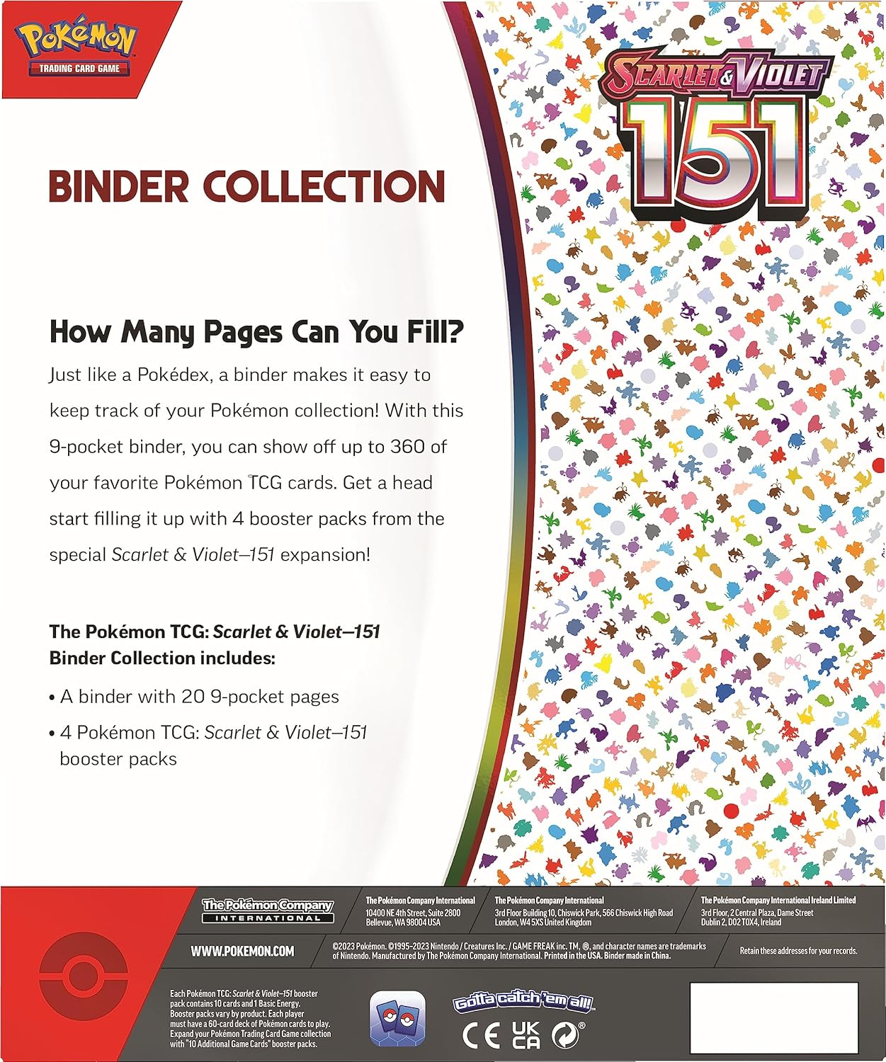 Scarlet & Violet—151 Binder Collection. How Many Pages Can You Fill? Just like a Pokédex, a binder makes it easy to keep track of your Pokémon collection. With this 9-pocket binder, you can show off up to 360 of your favorite Pokémon TCG cards. Get a head start filling it up with 4 booster packs from the special Scarlet & Violet—151 expansion. A great gift for the Pokemon collector and player alike.