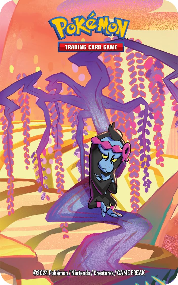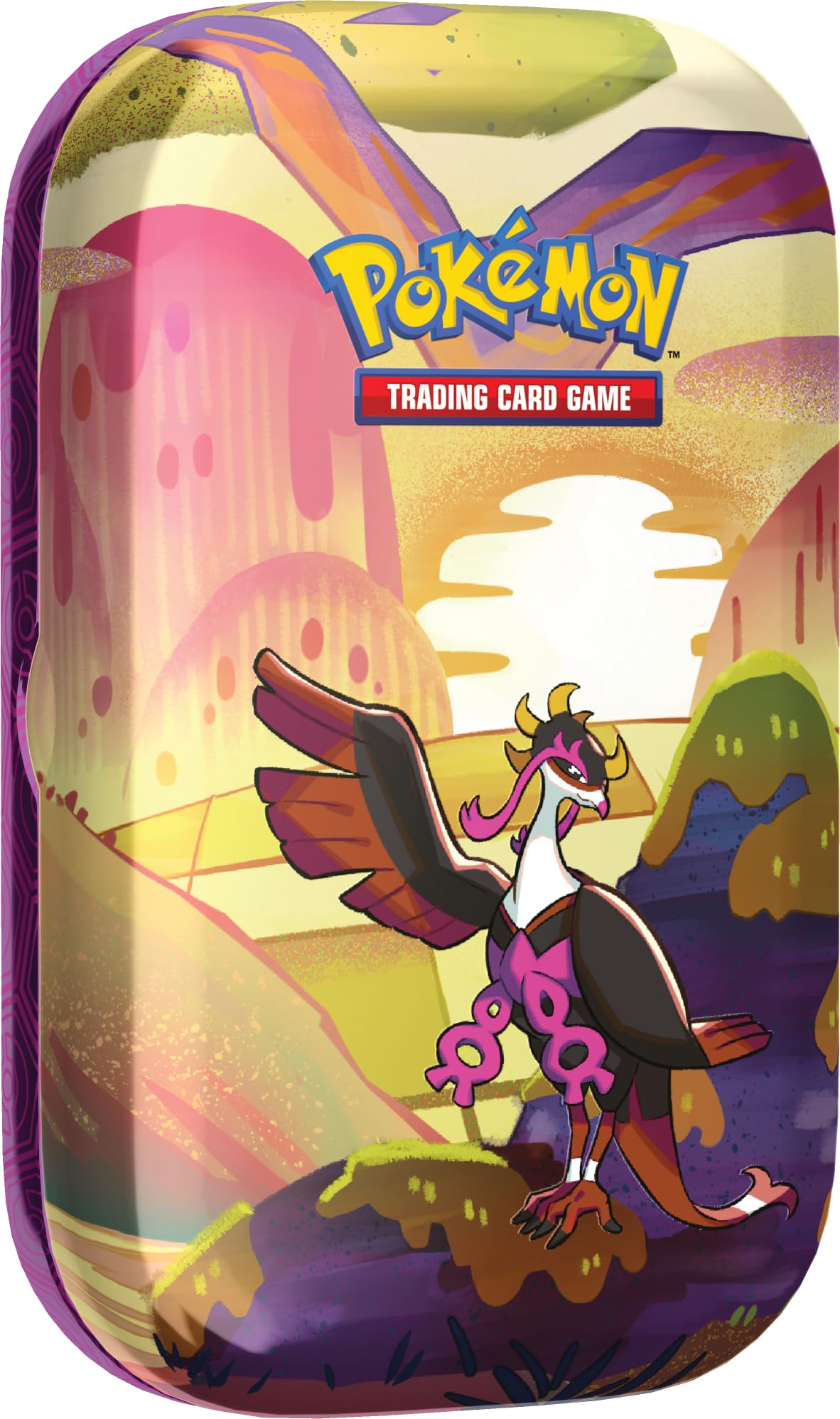 Perfectly sized for taking your favourite 60-card deck on the go (unsleeved), this fantastic Mini Tin features a fun illustration and includes 2 Pokémon TCG: Scarlet & Violet—Shrouded Fable booster packs, 1 sticker sheet and and art card.