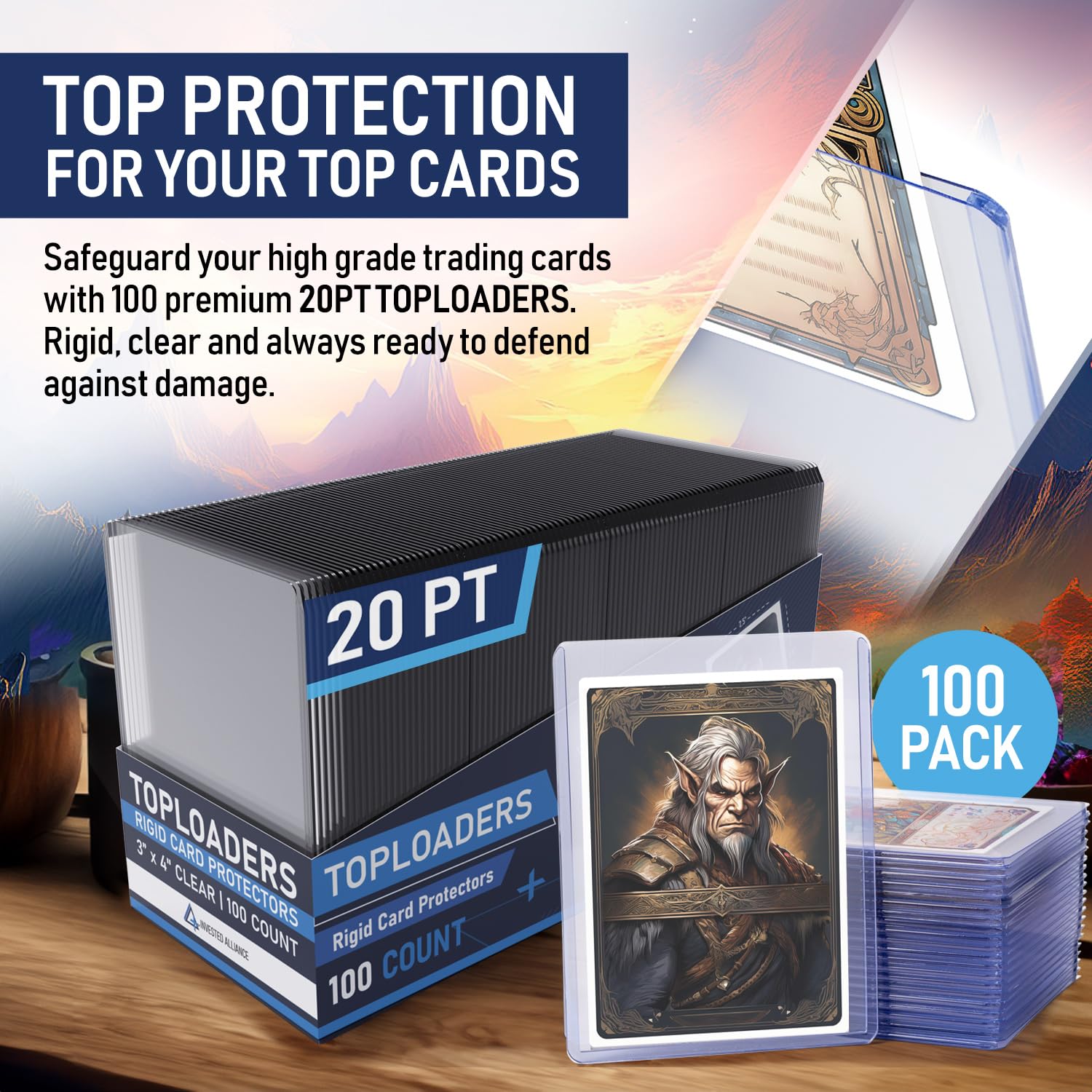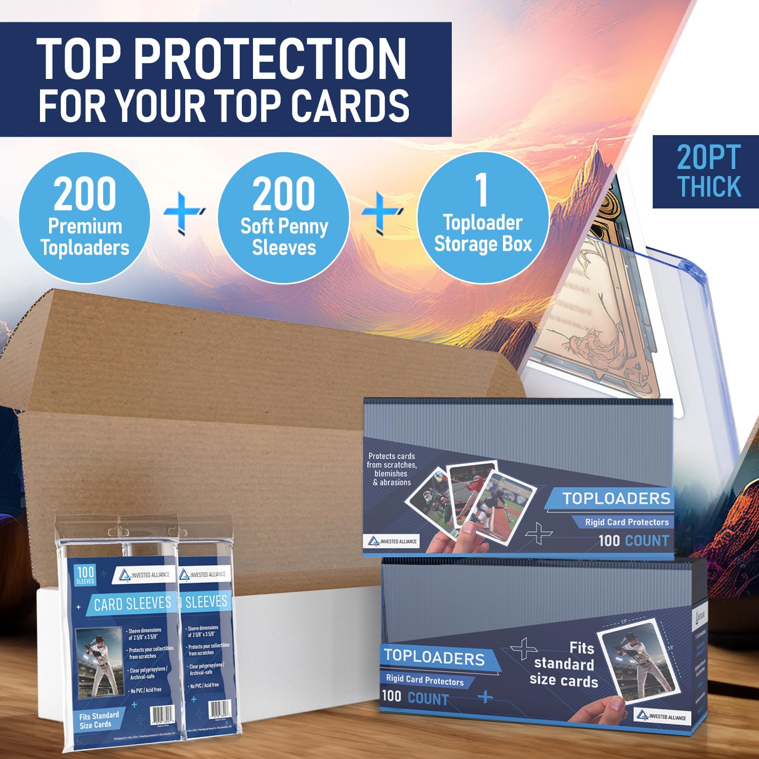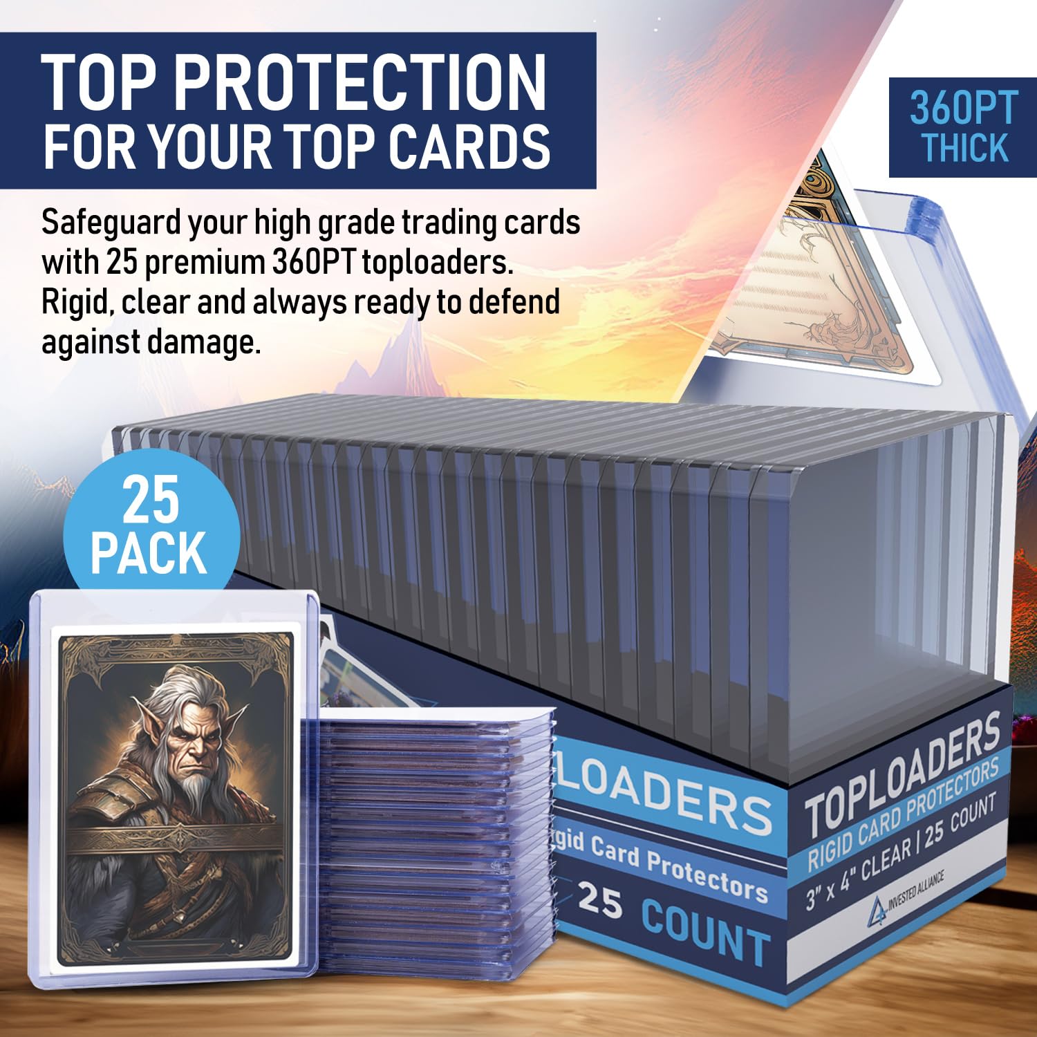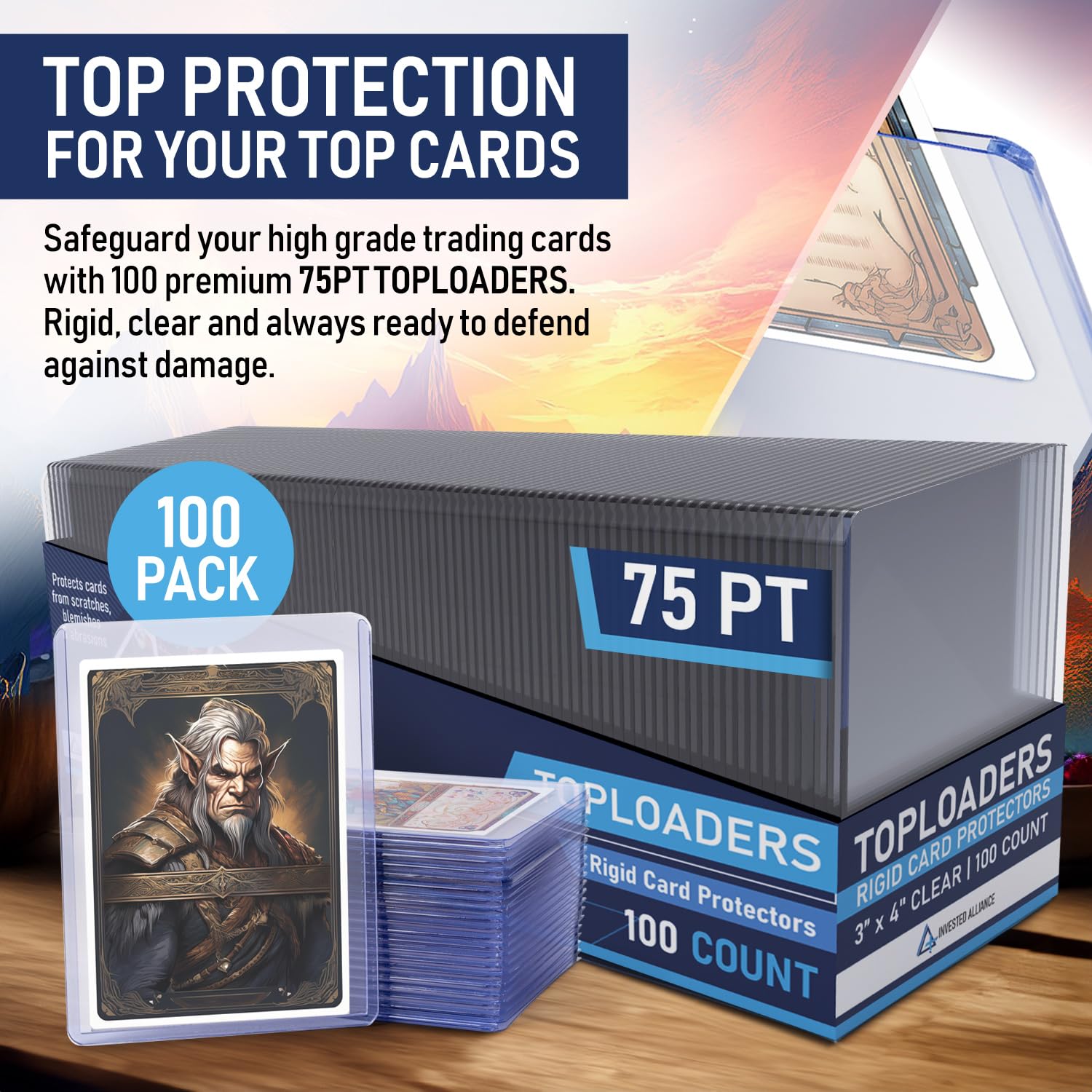 - For standard size collectors cards: Our top loaders open on the short side and protect your standard 2.5” x 3.5” trading, gaming and sports cards up to 20 pt thickness. Use with our Invested Alliance soft penny sleeves for the ultimate card protection!