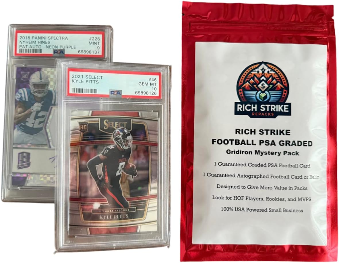 Rich Stike Football PSA Mystery Pack - Gridiron Edition, 1 PSA Graded Card, 1 Autograph or Relic Card