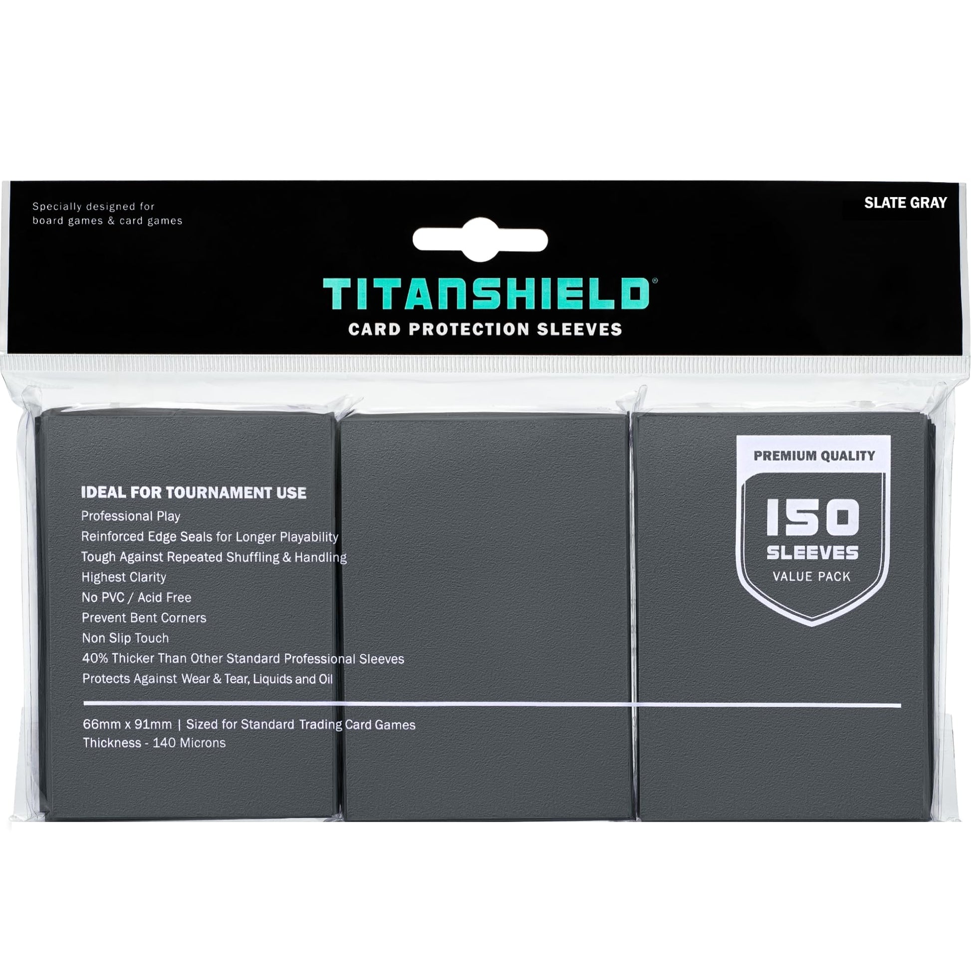 TitanShield (150 Sleeves, Black) Compatible with Standard Sized Board Games, MTG Magic The Gathering, Pokemon, Lorcana and Trading Cards 2.5" x 3.5" 66x91mm